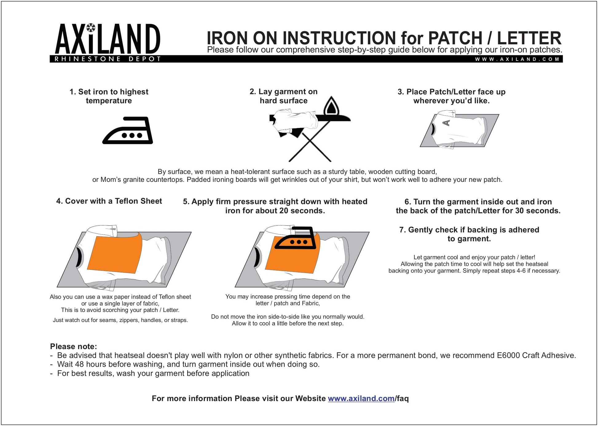 Please Note: Do NOT try to iron the patches onto un iron-able fabrics with a low melting point such as nylons, vinyls or leathers. Hot-fix items works best with Cotton material.