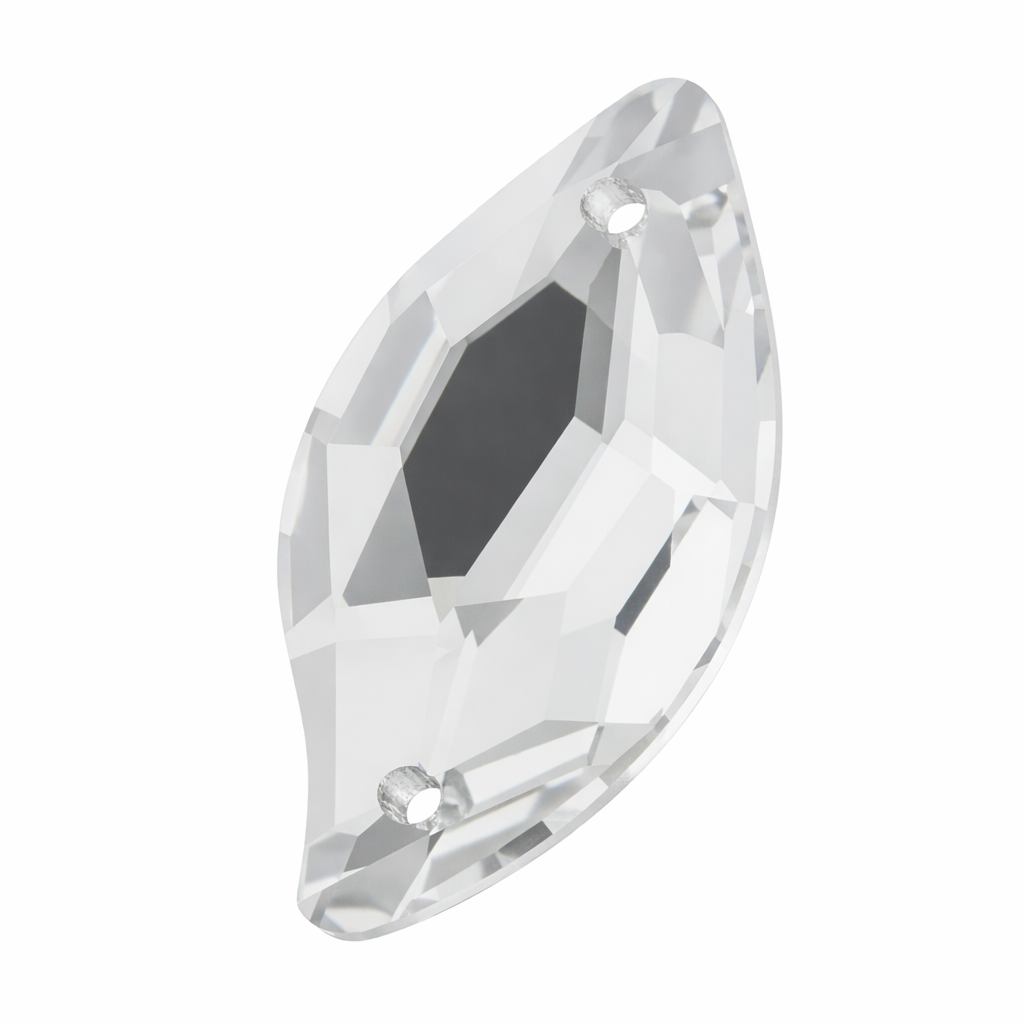 These rhinestones feature a beautiful leaf-inspired shape with precision-cut facets that create a graceful sparkle and organic flow of light. Their unique form brings a soft, artistic touch while maintaining a luxurious shine. Designed with pre-drilled holes, they are easy to sew securely onto fabrics, accessories, and decorative projects.